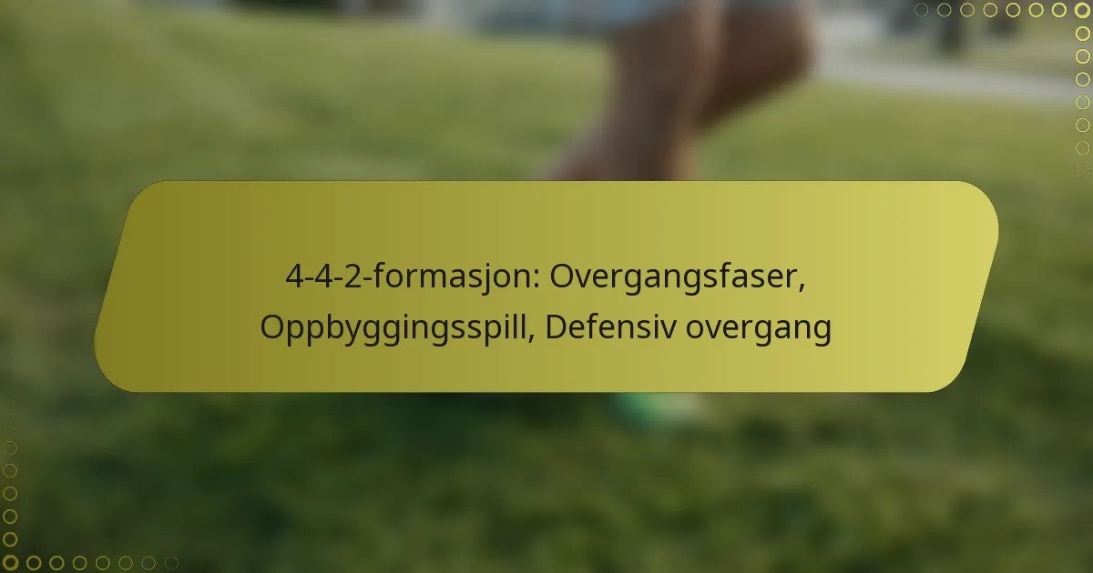 4-4-2-formasjonen er en mye brukt taktisk oppstilling i fotball, preget av sin balanserte tilnærming med fire forsvarsspillere, fire midtbanespillere og to spisser. Denne formasjonen legger til rette for effektive overganger mellom defensive og offensive faser, noe som gjør det mulig for lag å utnytte rom samtidig som de opprettholder defensiv integritet. Oppbyggingsspill innenfor denne strukturen vektlegger strategisk bevegelse og ballbesittelse, noe som er avgjørende for å skape scoringsmuligheter samtidig som lagformen bevares.