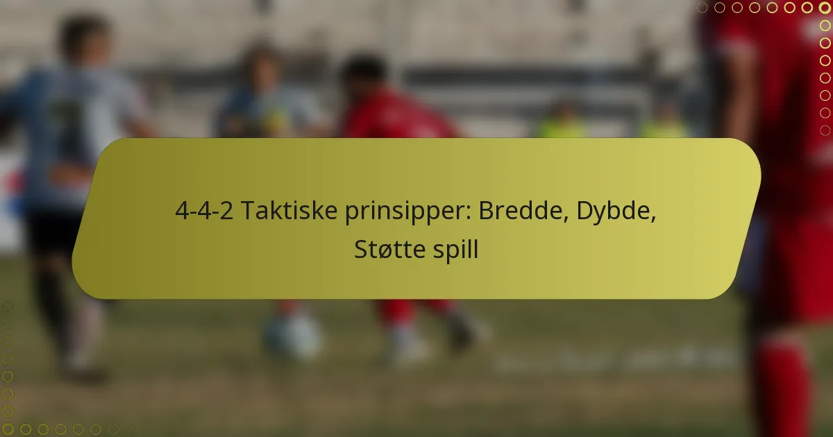 4-4-2-formasjonen er bygget rundt tre kjerneprinsipper: bredde, dybde og støtte spill. Disse elementene samarbeider for å skape en balansert og effektiv taktisk struktur på banen. Ved å utnytte flankene effektivt kan lag strekke motstanderens forsvar, mens vertikal plass forbedrer både angrepsalternativer og defensiv stabilitet.